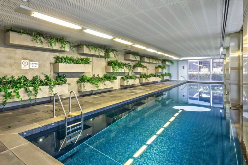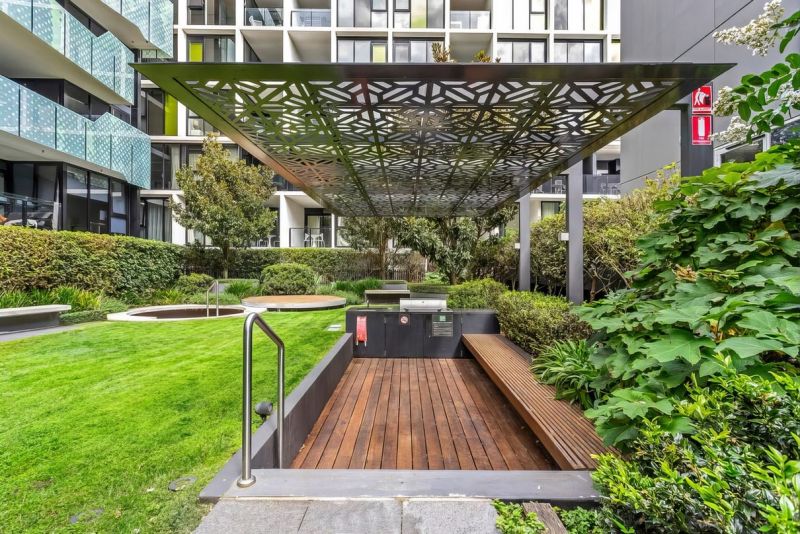 Facilities include rooftop BBQ, communal gardens, resort-style pool, gym and library.