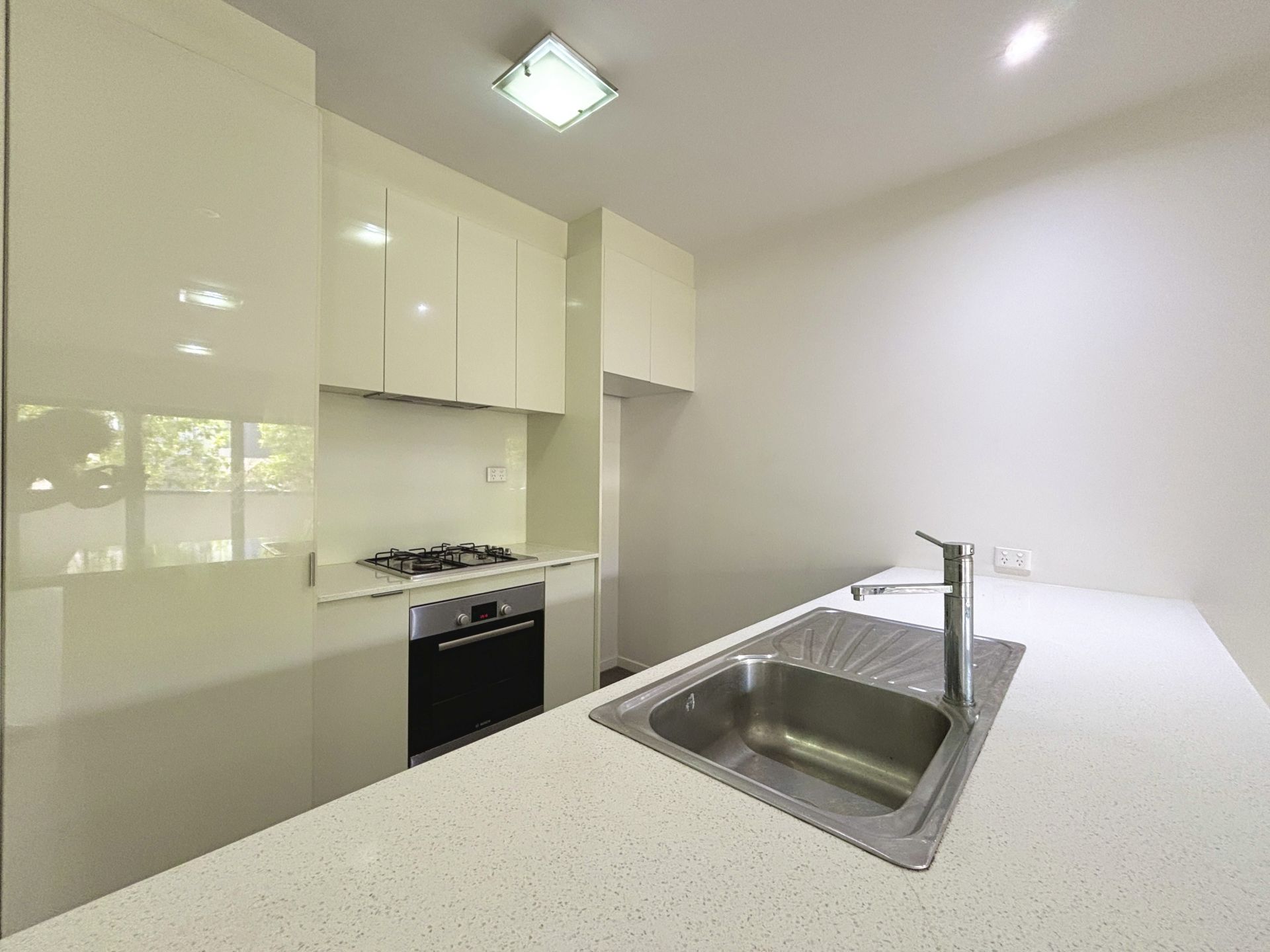– House sized kitchen with stone benches.