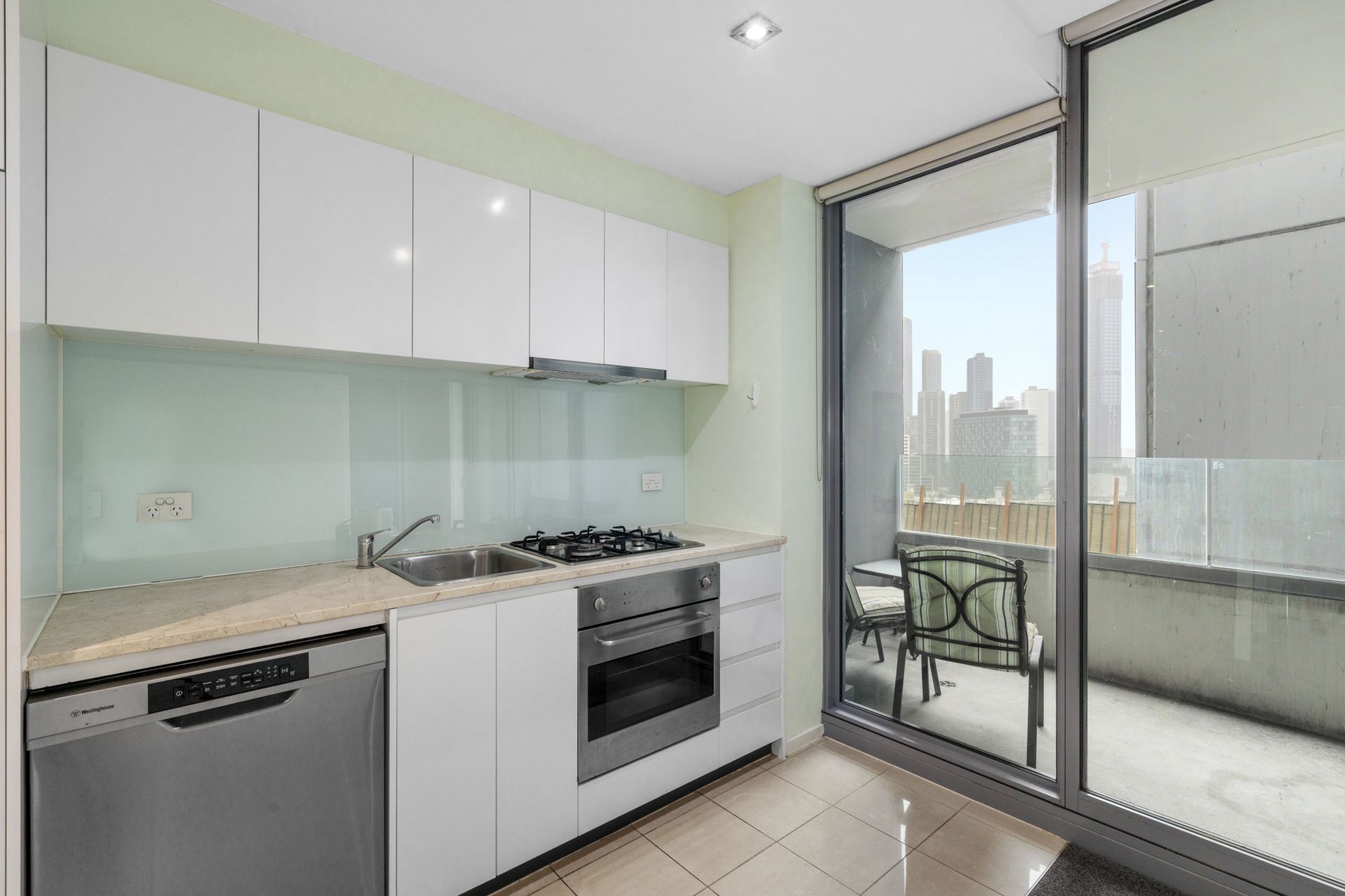 Open plan living and a great sized balcony overlooking Melbourne’s CBD skyline complete the picture.