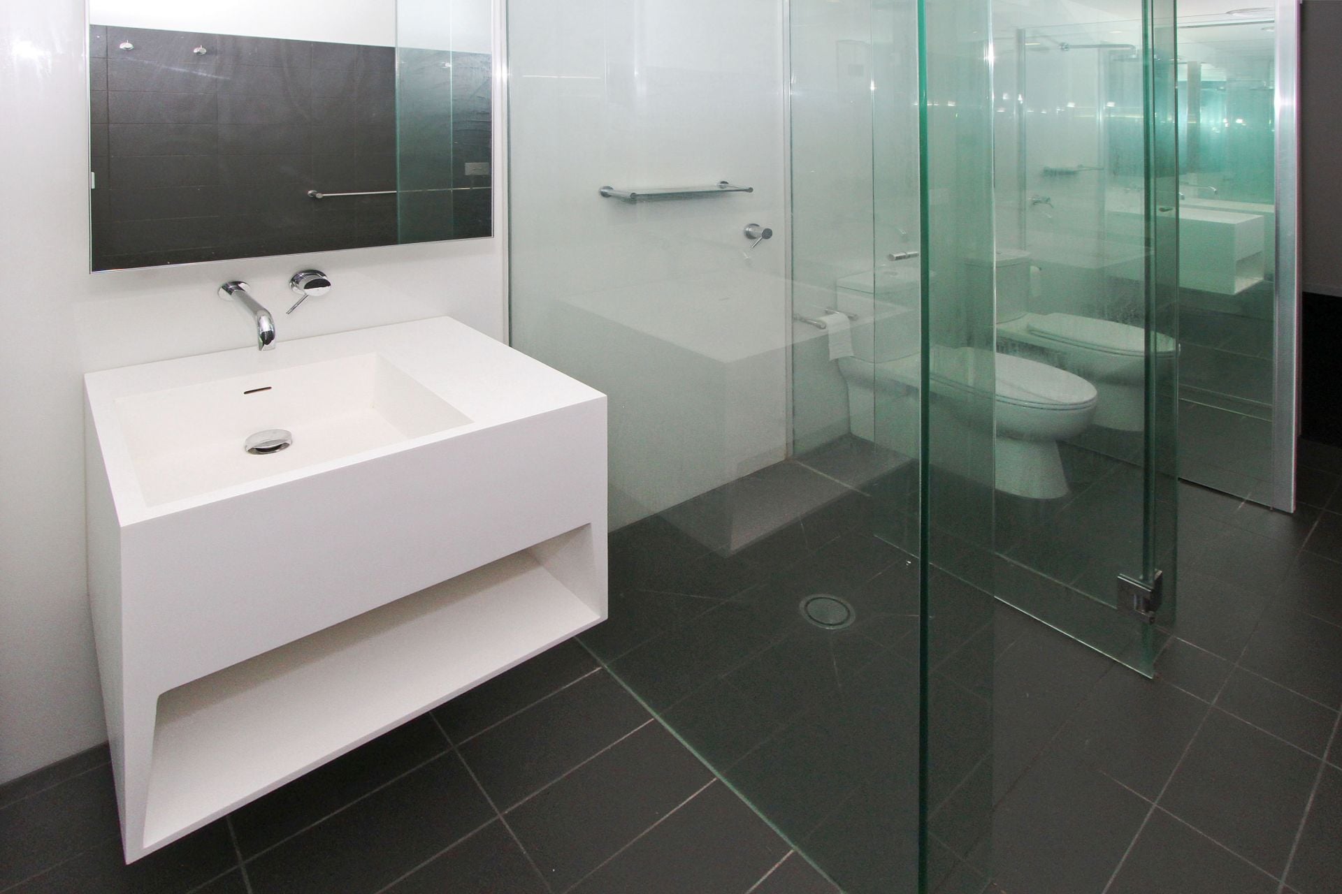 -Modern Bathrooms: Sparkling bathrooms with concealed European laundry for a sleek, functional design.