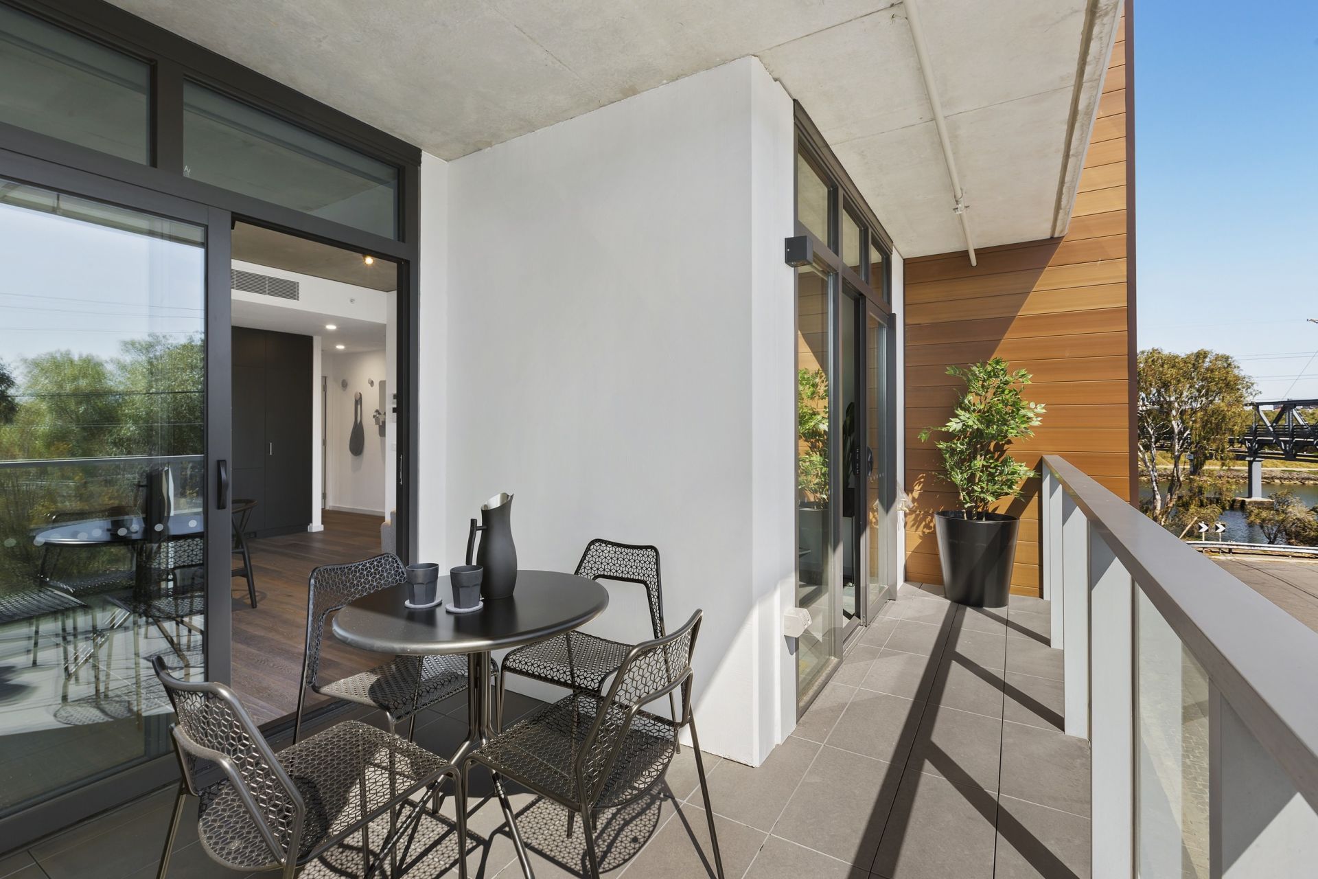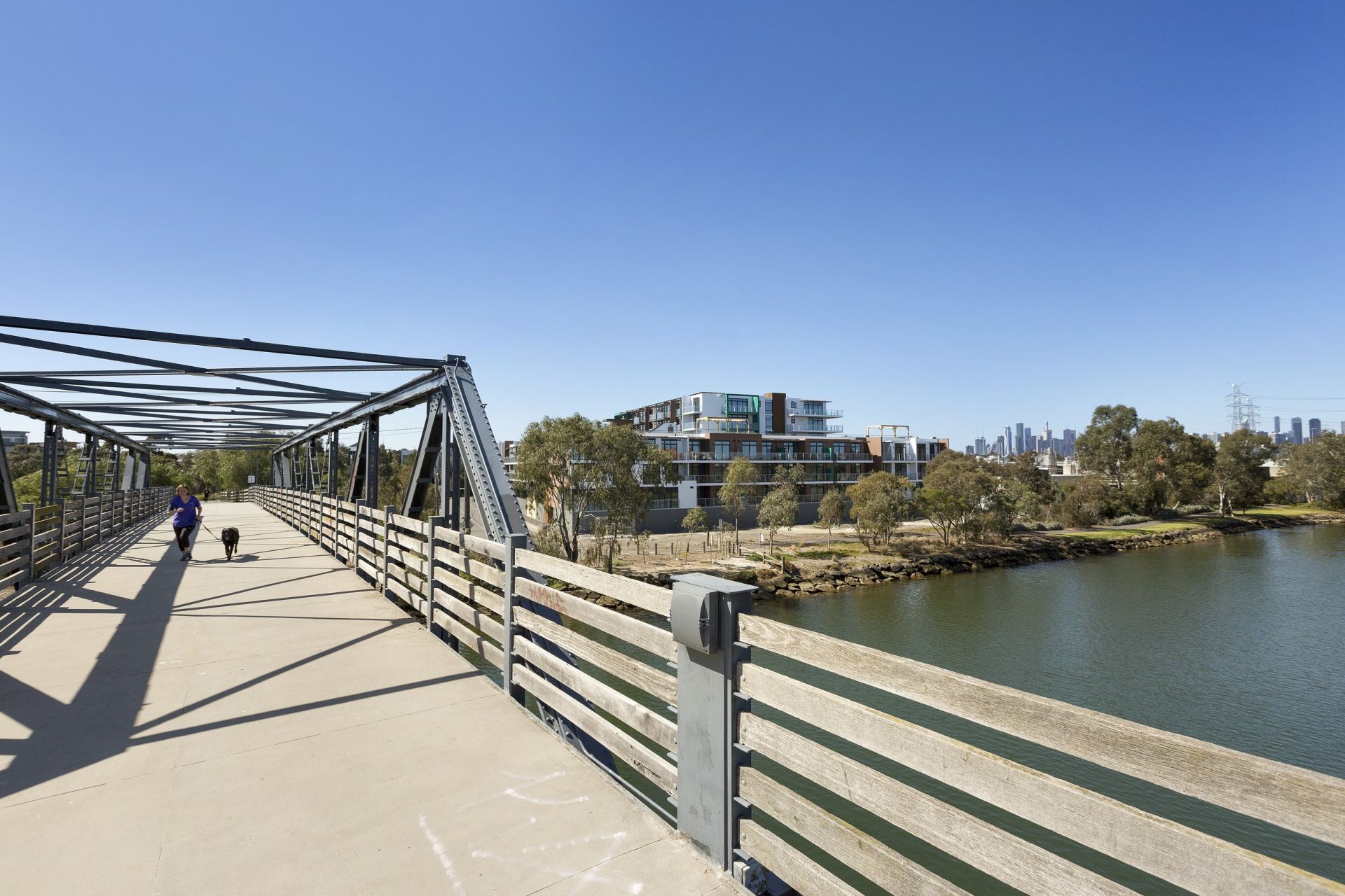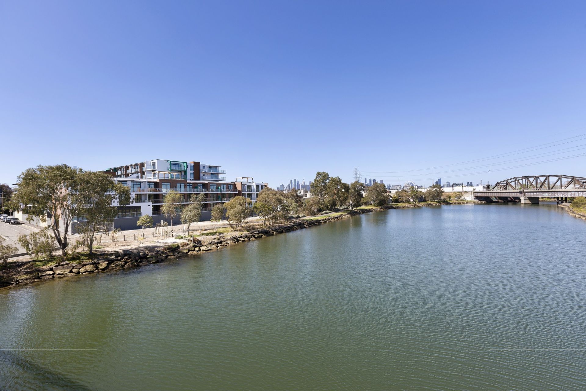 This absolutely stunning one bedroom apartment with views of parklands and Maribyrnong River, will exceed expectations. Featuring spectacular concrete ceilings, high end timber floors throughout and superbly positioned on level two of the Riverwalk Apartments complex, the accommodation includes a spacious well designed living & dining area, opening to a full width entertainers’ balcony, stylish fully fitted kitchen with quality appliances, gas cooking, dishwasher and integrated refrigerator. A light filled double bedroom with fitted built-in robes, deluxe fully tiled bathroom with rainhead & hand shower, separate euro laundry, generous storage, heating and cooling. Additional features include, two side by side car parks, two spacious storage cages, secure intercom entry and lift access. Residents enjoy access to beautiful communal areas with rooftop garden terrace & barbeques. A wonderful lifestyle opportunity for owner occupiers, investors, with cycle paths, parks, walking trails, wetlands, recreational activities, public transport options, cafes, close to shopping and easy reach to City, airports, freeway, universities and hospitals.