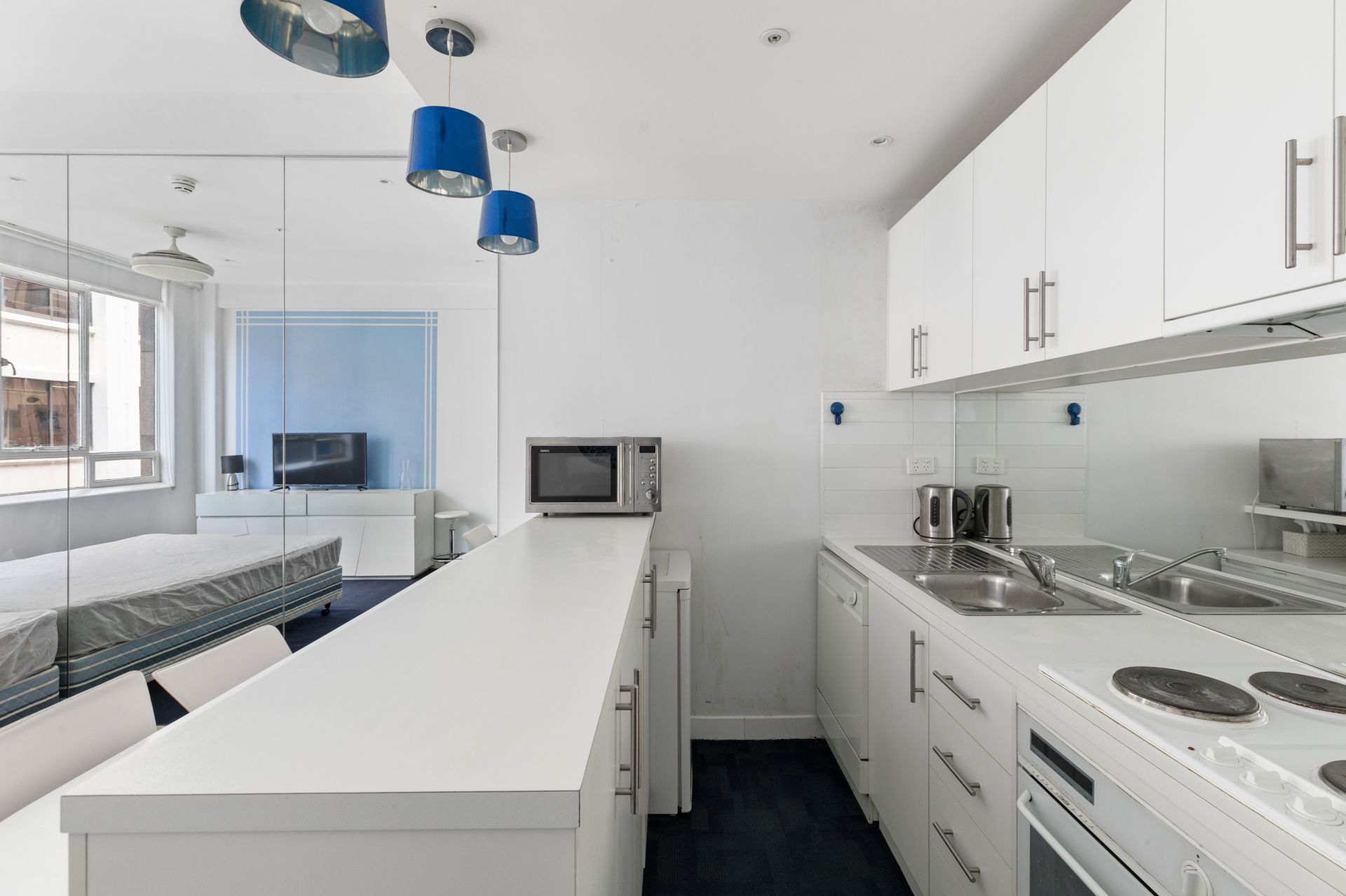 Comprising full kitchen with electric under bench oven, 4 burner hotplates and dishwasher, island bench and an abundance of storage, handy breakfast bar/study area and spacious living room/bedroom.