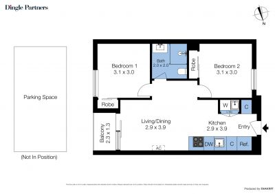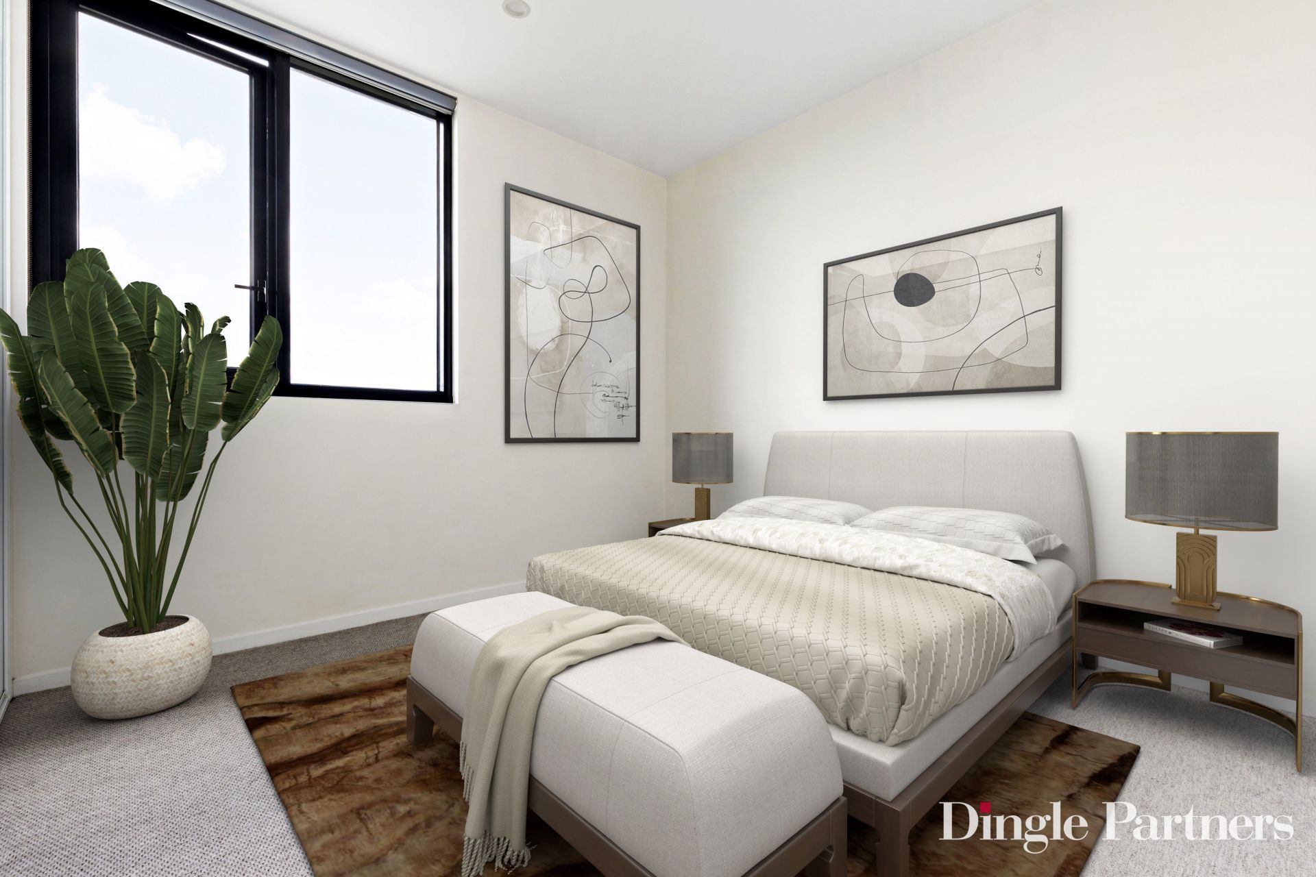 The spacious main bedroom includes a built-in robe, complemented by a second bedroom serviced by a sleek and modern bathroom.