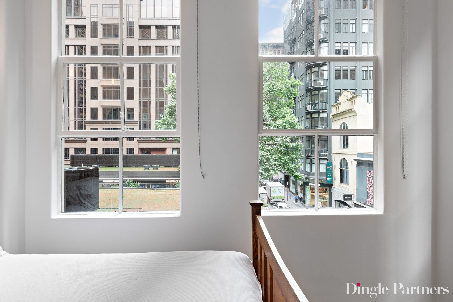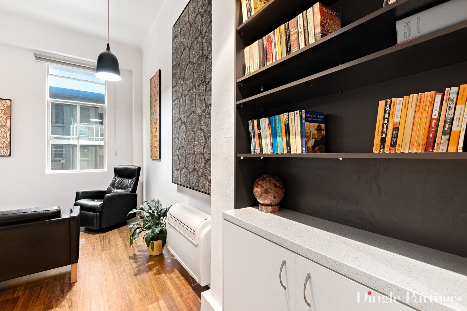 Designed by Architect Marcus Barlow which is also famous for the magnificent Manchester Unity building, this sensational apartment boasts huge ceiling heights and a sense of air and space. Discover the old-world charm within the original building. The second level enjoys vast windows, historic features both internally and externally and a leafy outlook with abundant natural light.
