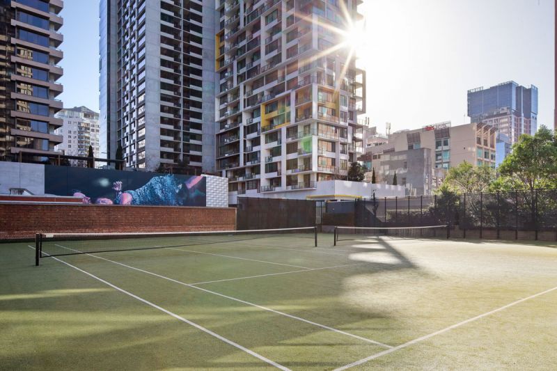 City Point residents enjoy outstanding resort-style amenities, including a grand foyer entrance with 24/7 concierge, a heated indoor swimming pool, fully equipped gym, two tennis courts, and an impressive outdoor terrace with BBQ facilities.