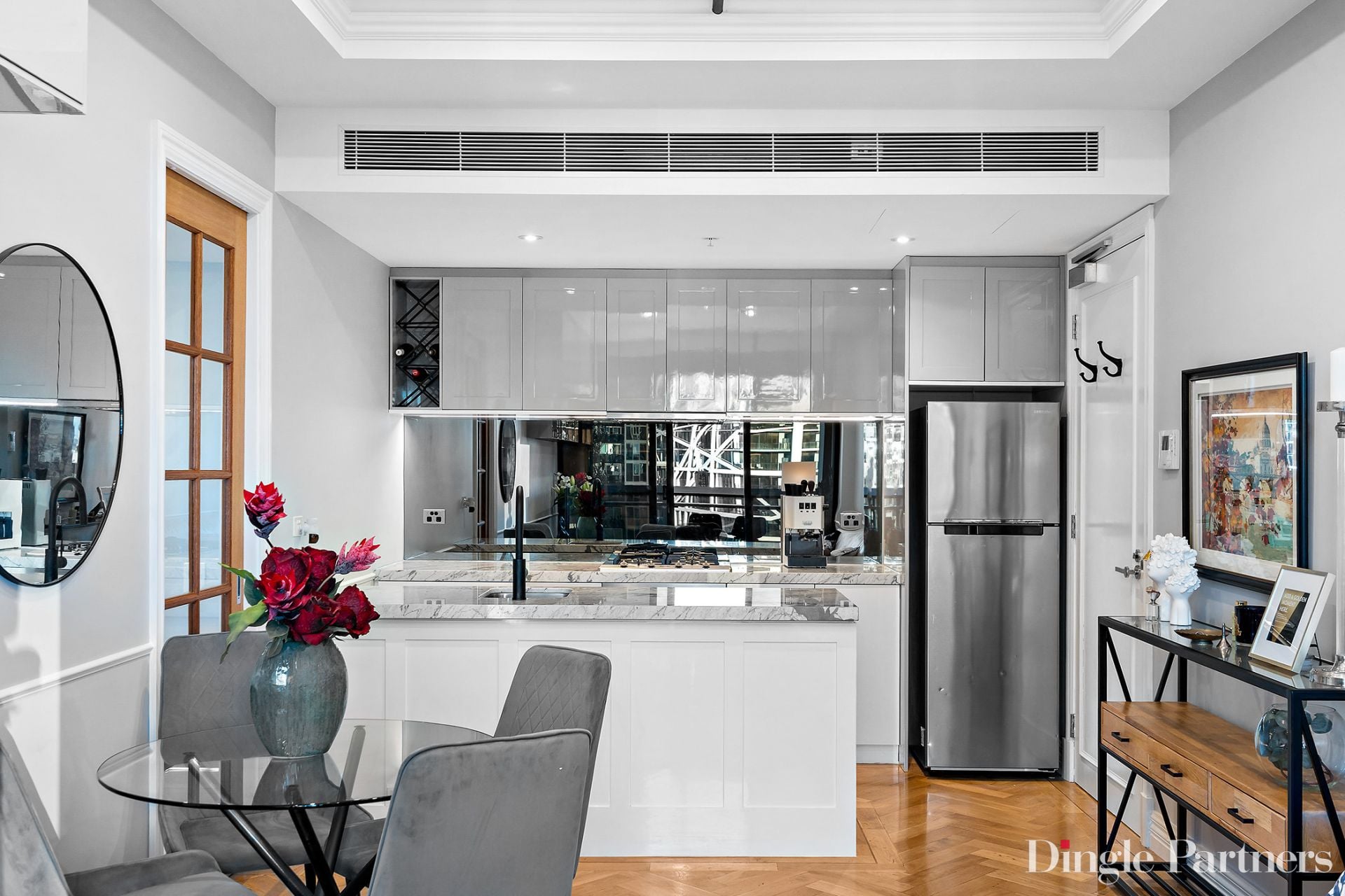 Live above it all in the prestigious Prima Pearl tower! This fully renovated 1-bedroom apartment features parquetry floors, designer lighting, a marble kitchen with Miele appliances, and a heated balcony overlooking Melbourne’s skyline.