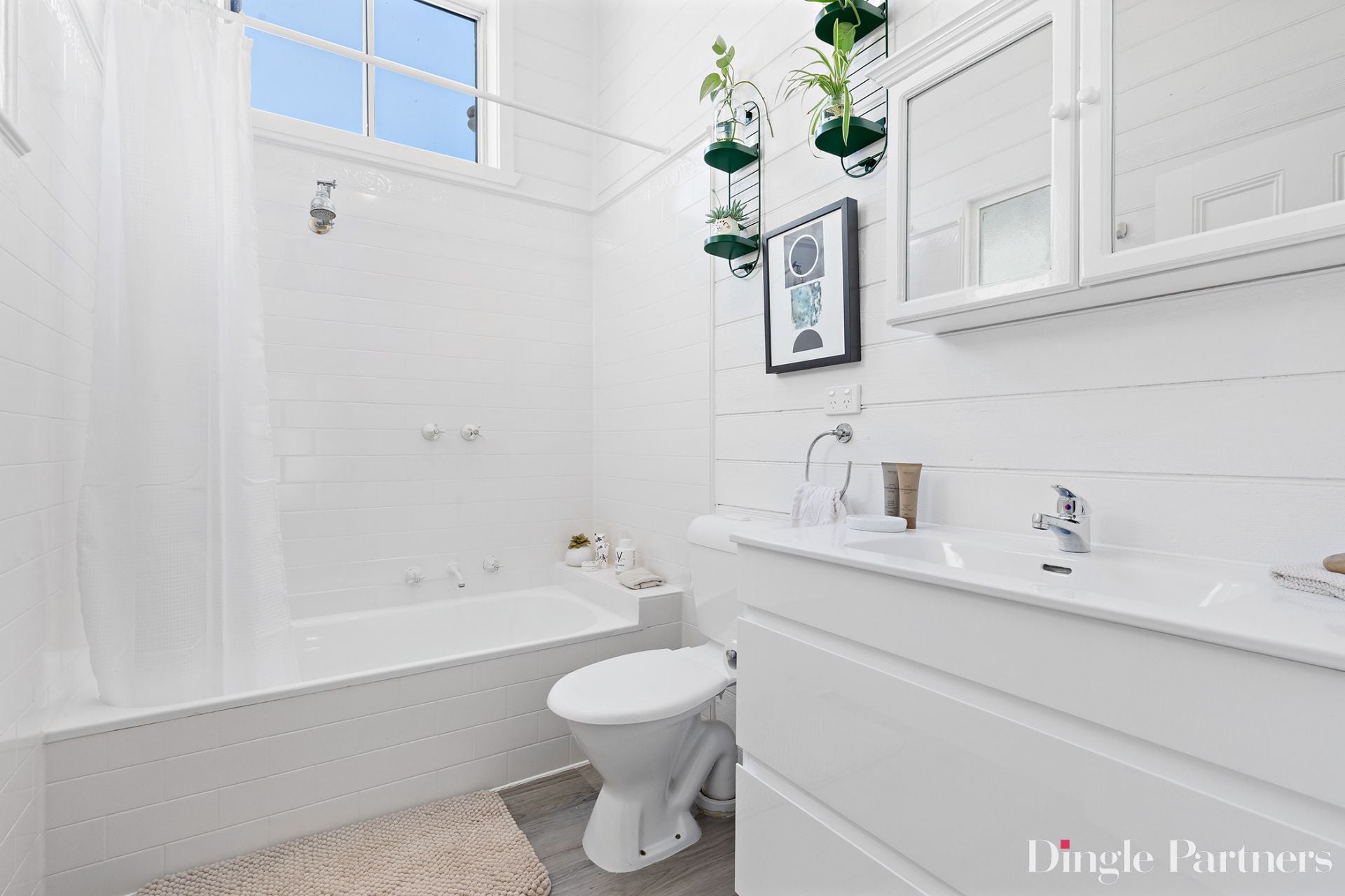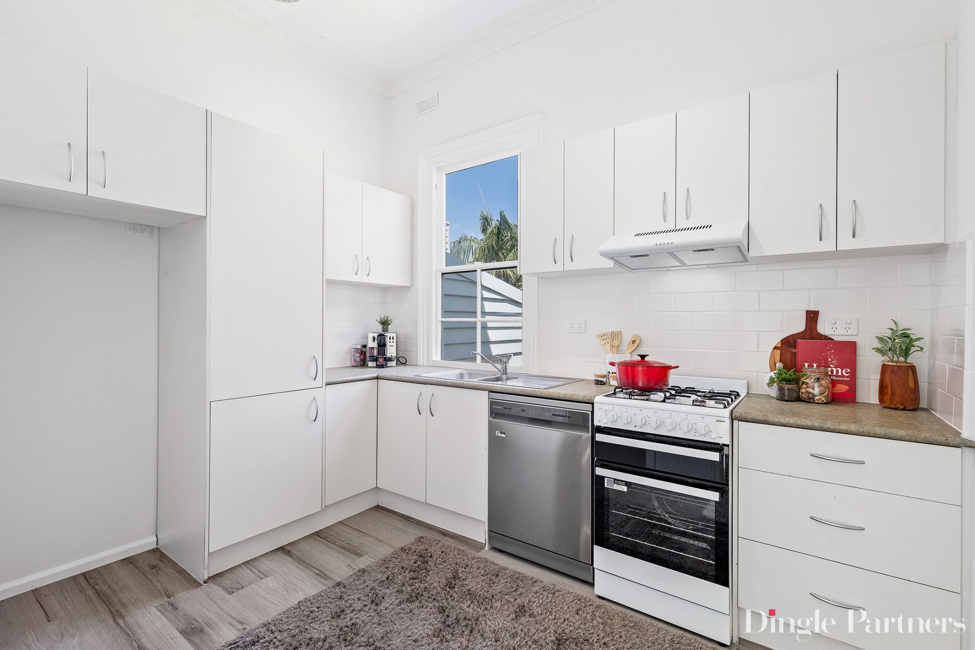 The updated kitchen overlooks the deep rear garden and is appointed with new appliances including gas cooking, dishwasher, and ample cupboard and bench space. A central bathroom includes a shower-over-bath and new vanity, completing the home’s practical and comfortable layout.