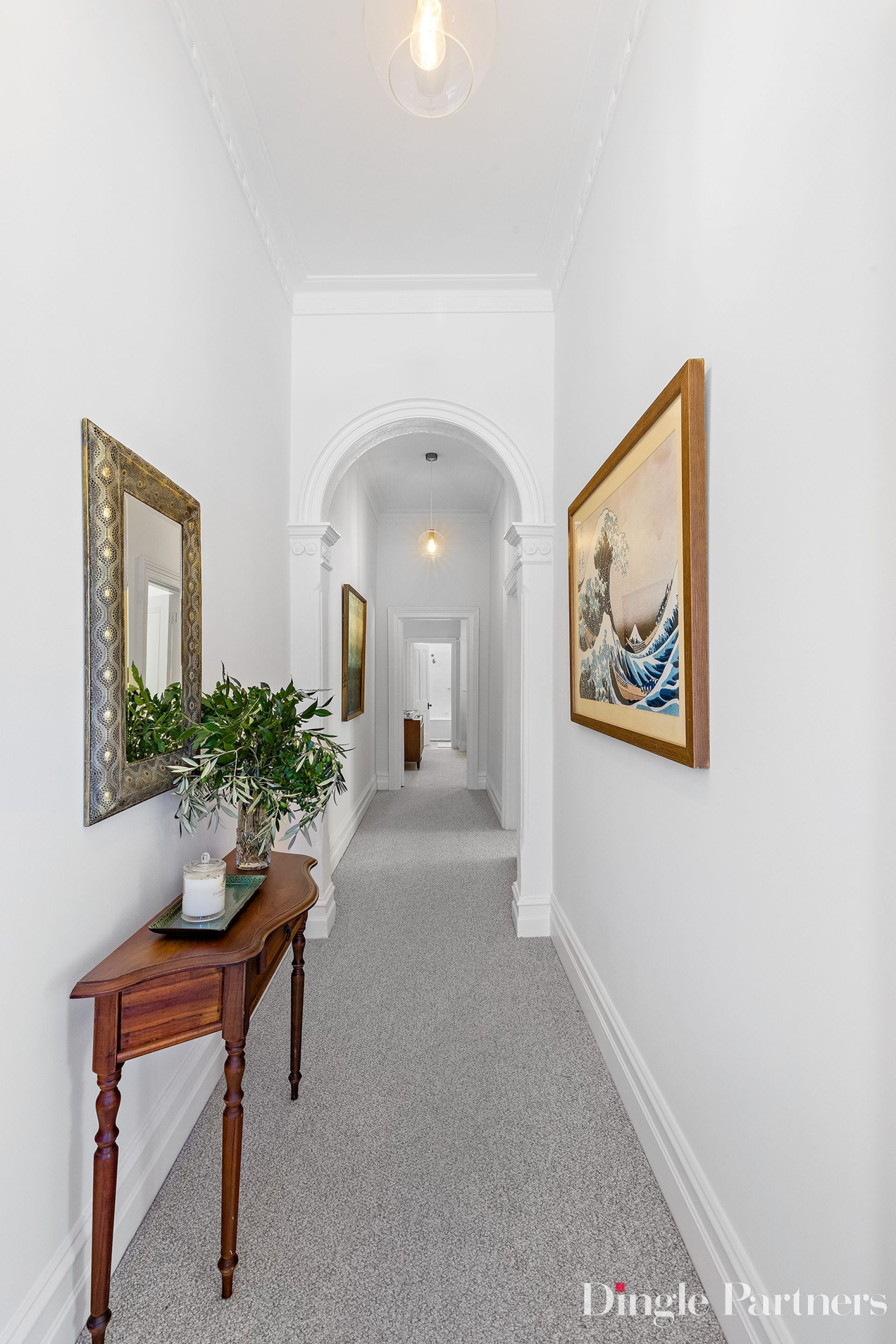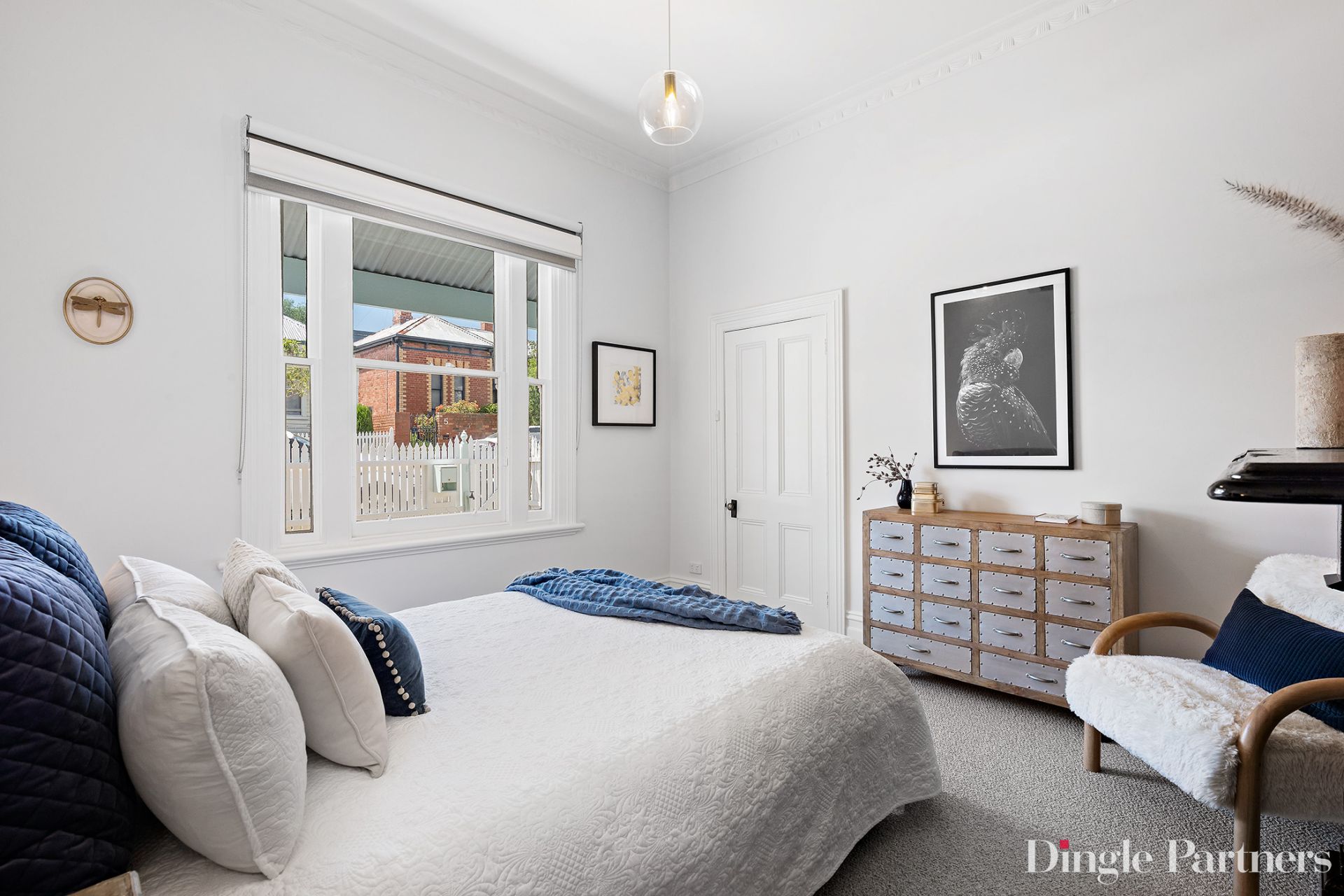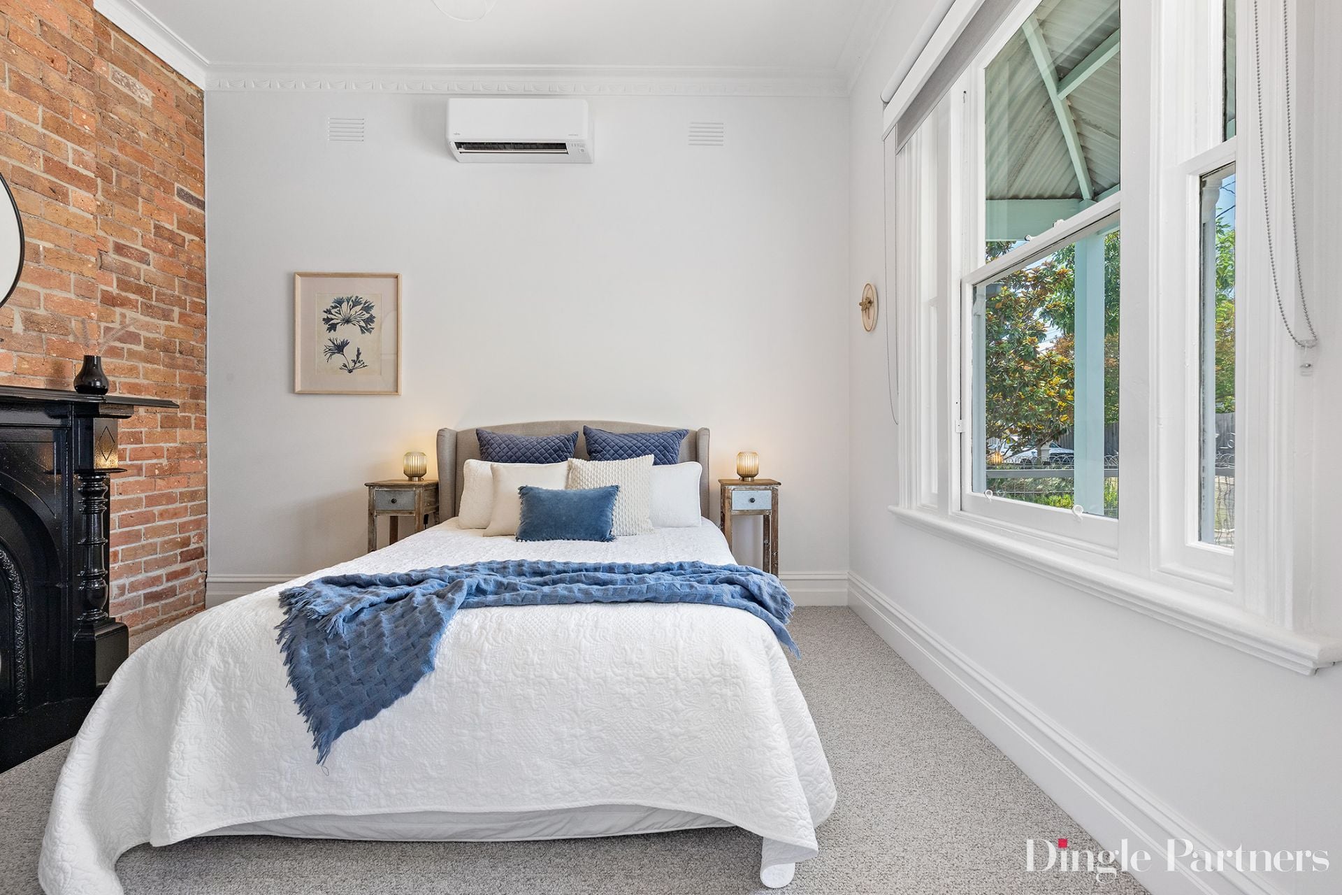 Sitting pretty as a picture behind a white picket fence and cottage garden, this lovely Victorian home bestows modern comfort and a beautiful indoor and outdoor setting. The home opens to a large welcoming hallway with a feature archway, leading through to two large bedrooms and a generous living and meals area. The sun filled first bedroom features an original fireplace and both bedrooms have a striking exposed brick walls.