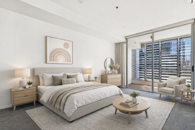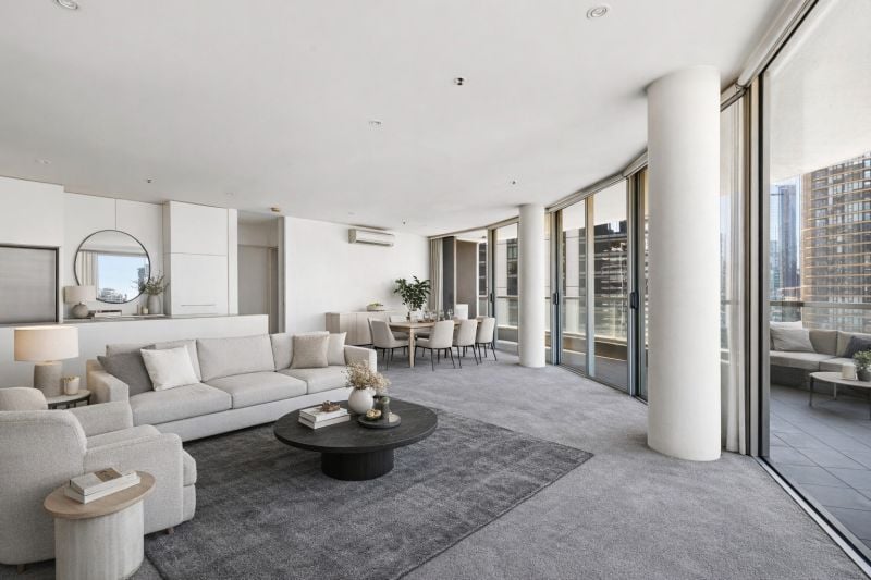 Bathed in natural light, this refined apartment is set high on the 14th floor of the tightly held Village Docklands complex, moments from Melbourne’s CBD, Southern Cross Station, and the Crown Entertainment Precinct.