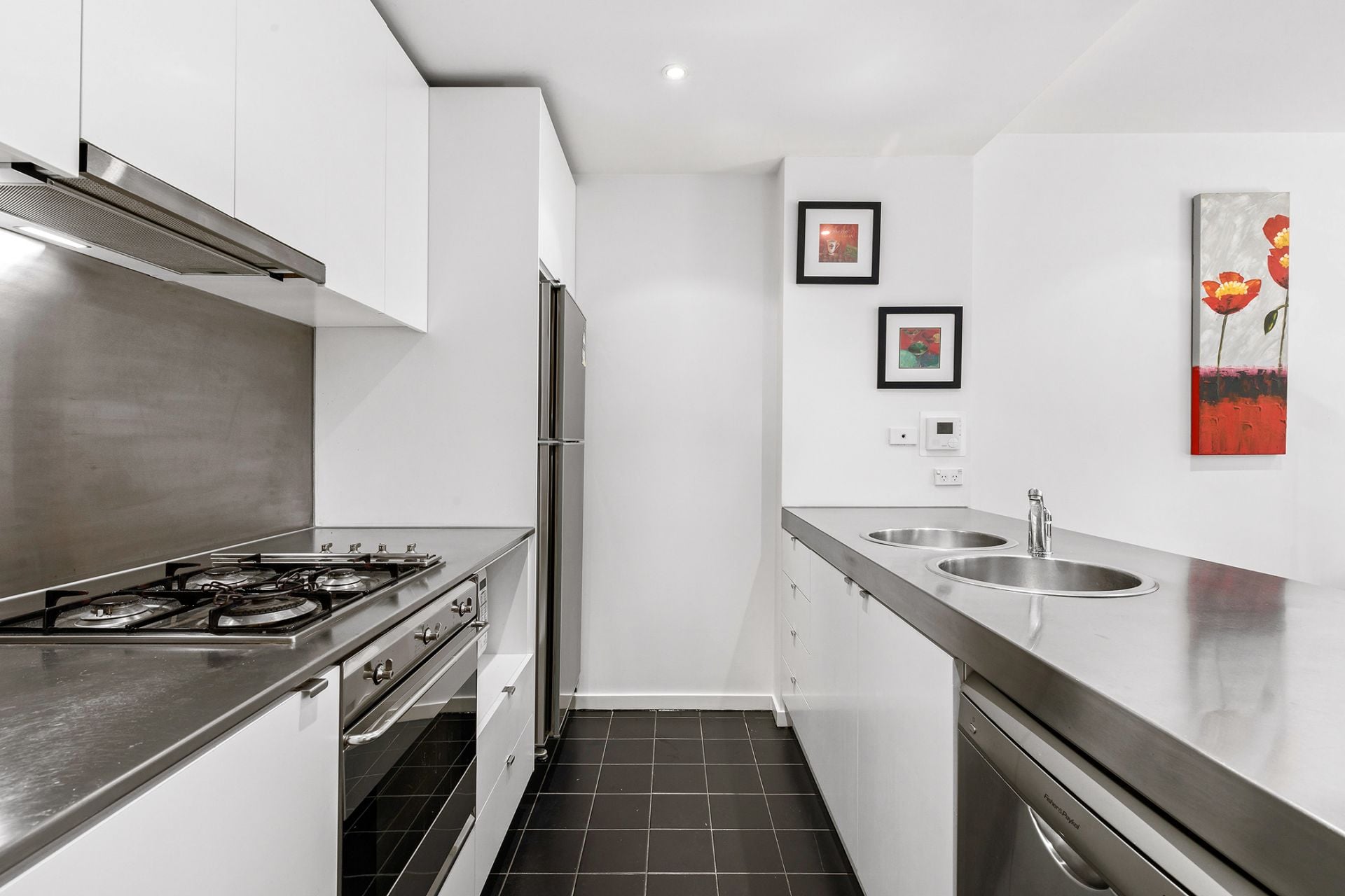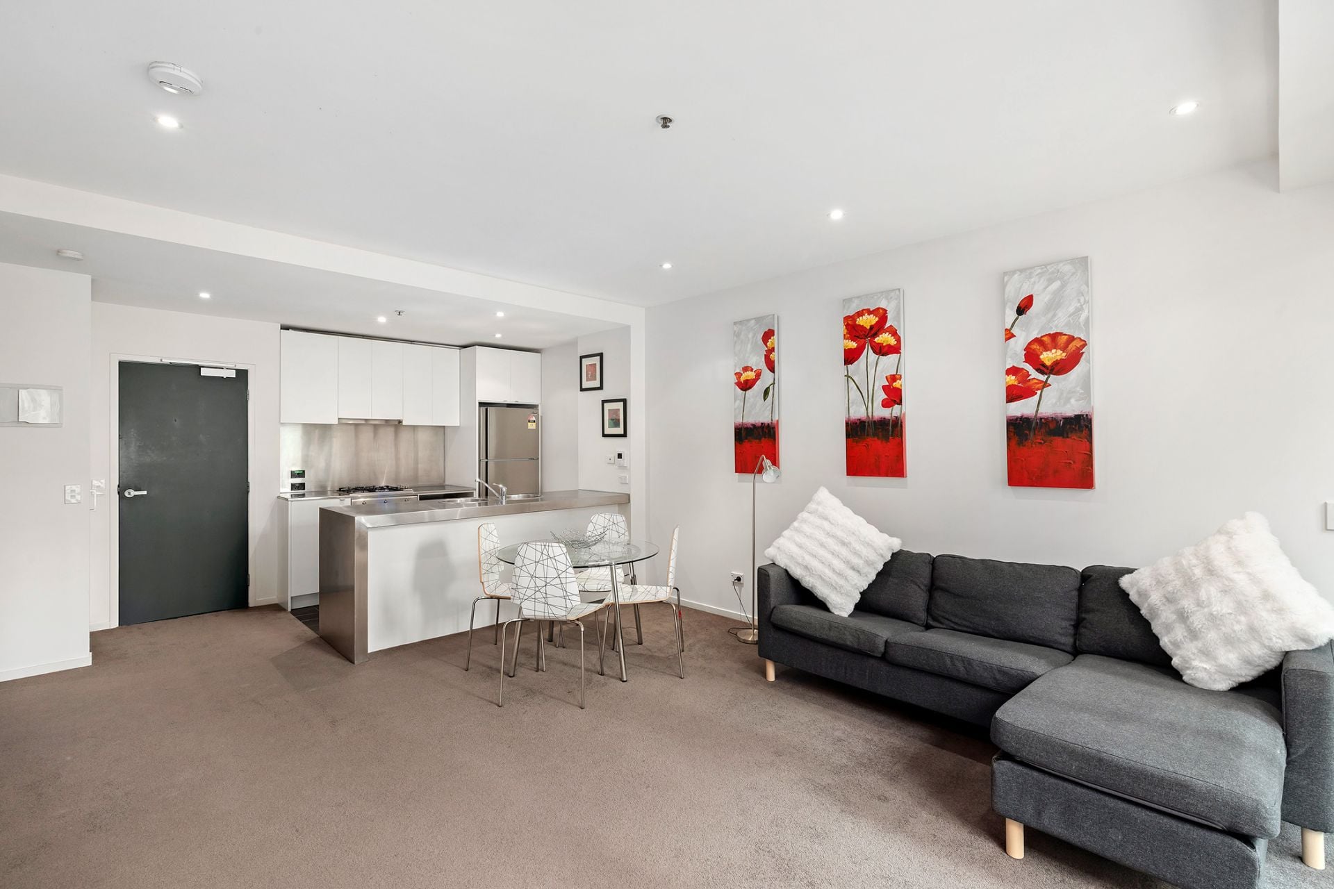 With plenty of natural light, the open-plan living and dining area is enhanced by floor-to-ceiling windows that flow seamlessly to a private balcony, creating a bright and inviting space to relax. The sleek, well-designed kitchen offers stainless steel bench tops and appliances, gas cooking, dishwasher, double sink, ample storage and a focus on both style and functionality.