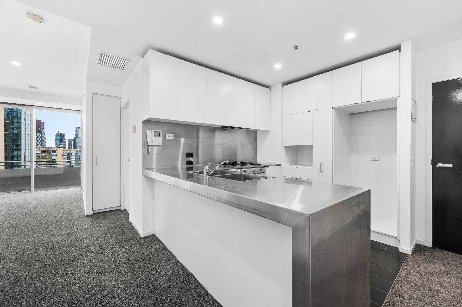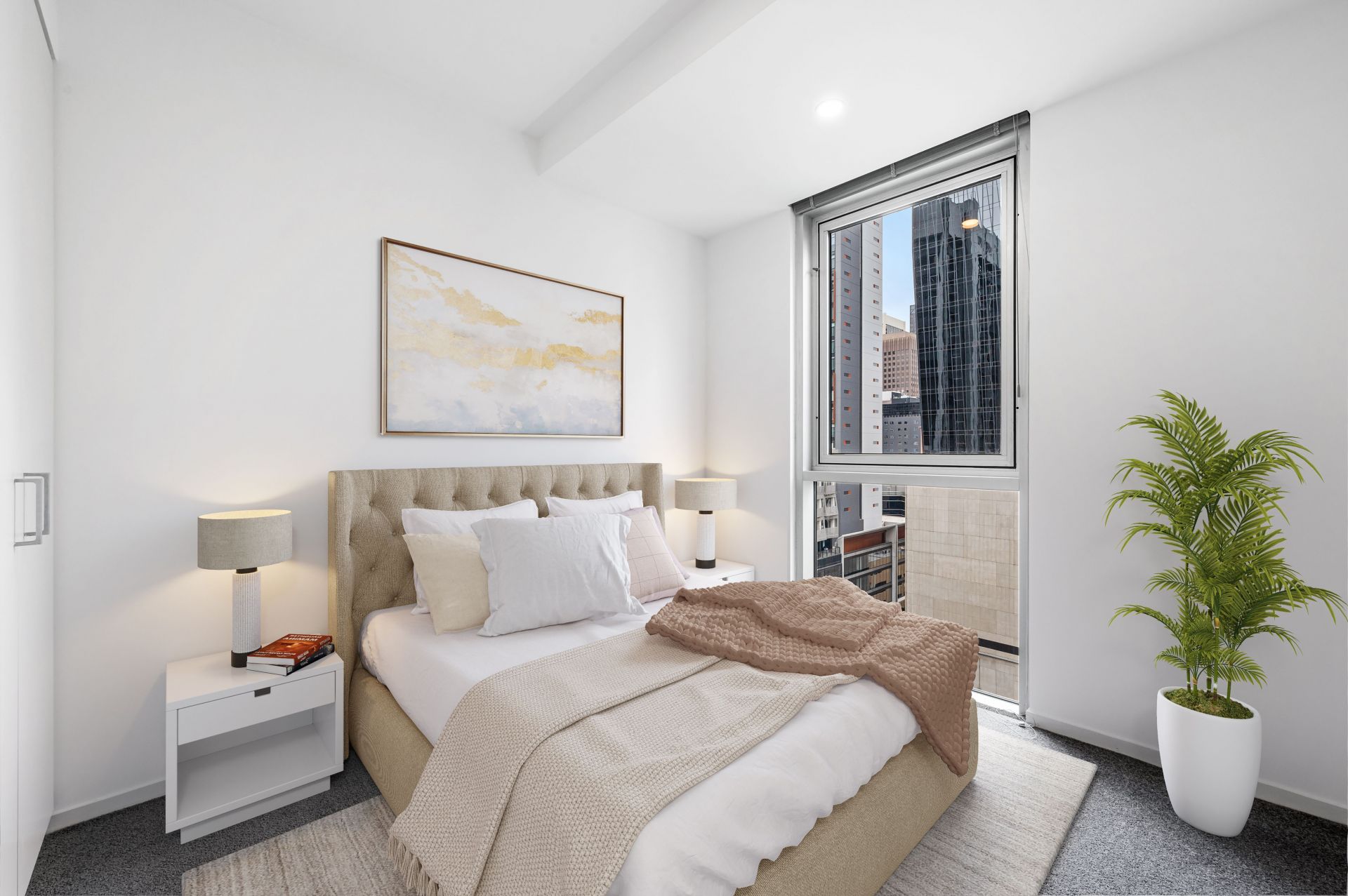 Spectacularly located in the superbly central Liberty Tower building, this light-filled 2-bedroom, 1 bathroom apartment offers undisturbed city views from a 14th floor. Comprising of bright central open plan living area with full height windows. An entertainer’s kitchen complete with a stainless steel benchtop, dual sink, abundance of storage and stainless steel European appliances including a dishwasher and gas cooktop. Both bedrooms are generous in size and offer built in robes. The master has direct access to the bathroom, which includes a Euro Laundry.